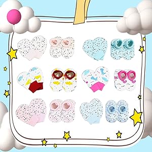 This mitten and sock set is designed for both baby boy and baby girl. It keeps their hand and feet protected from the cold and also prevent them from scratching themselves. This set compromises of 6 mittens and 6 matching socks for the baby.
