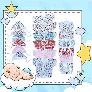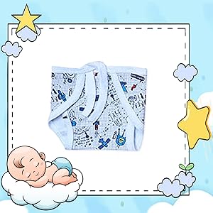 The kit comes with matching nappies similar to the shirts to make a set. These nappies are tying nappies and do not contain elastic to put pressure on the baby’s belly. You can adjust the knot of the nappies to the baby’s belly to keep them comfortable.