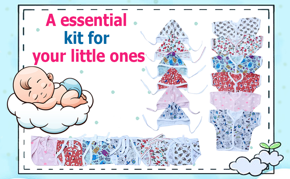 A comfortable dressing is always important for a baby. Be it day or night the clothes they wear always matter because baby requires comfort through out the day to play around,cuddle and most importantly during sleep. Fareto brings you a baby essentials kit that is for both girls and boys but also comfortable for your little ones.