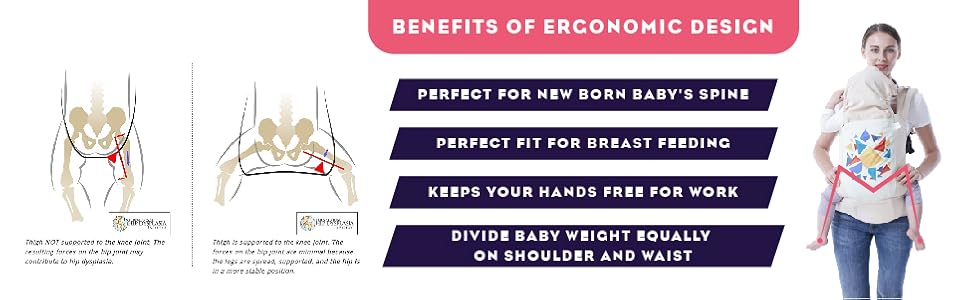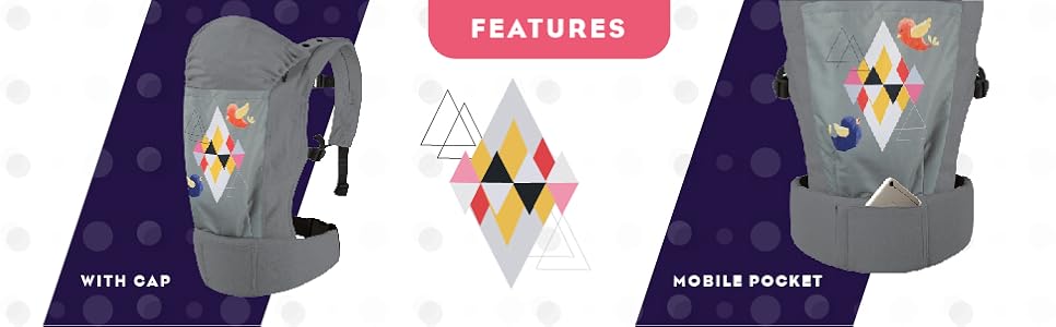 Wide shoulder & lumbar strap: Wide shoulder strap helps proper support and evens out weight on shoulders. Wide lumbar strap provides apt support to your waist and helps to carry your baby easily